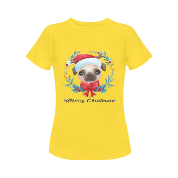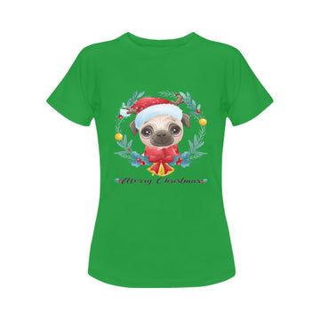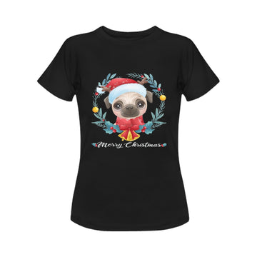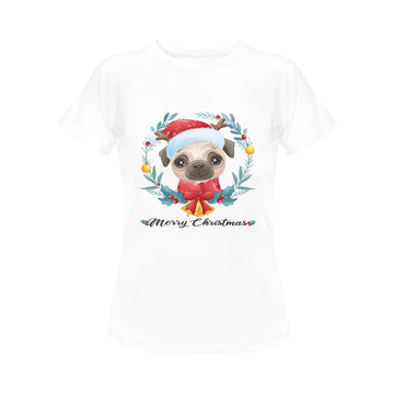 Merry Christmas Pug Women's Cotton T-Shirt - 5 Colors