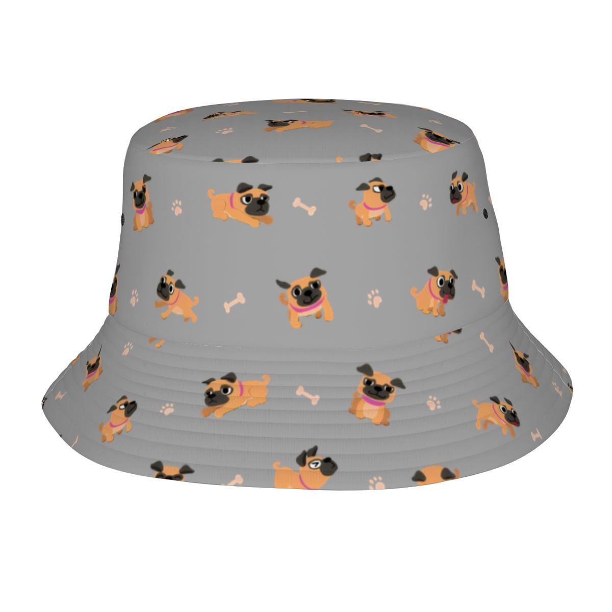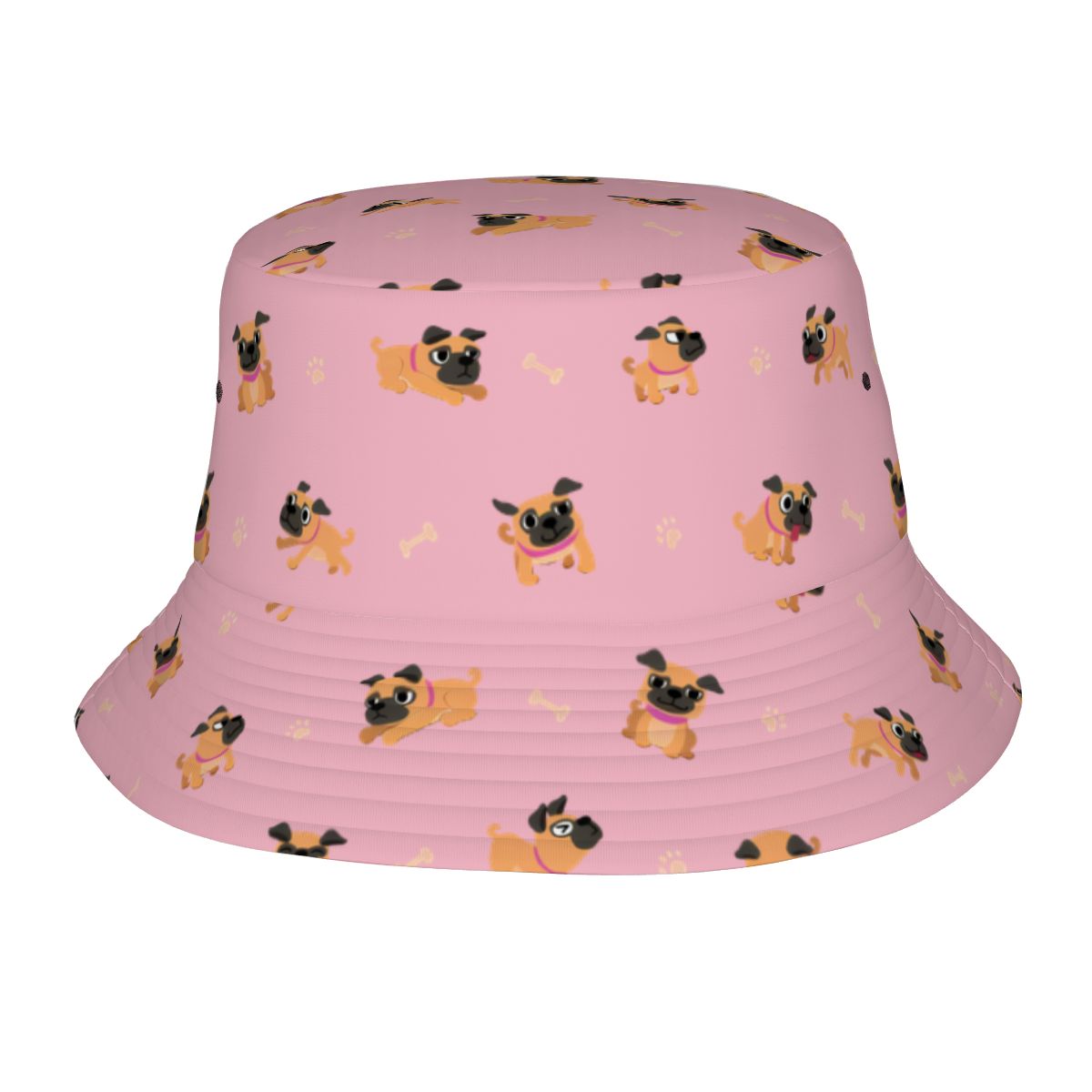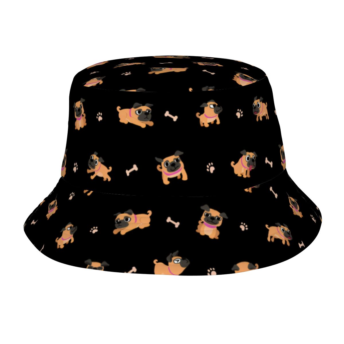 Bring instant sunshine to any day with the Playful Pug Adventure Bucket Hat.