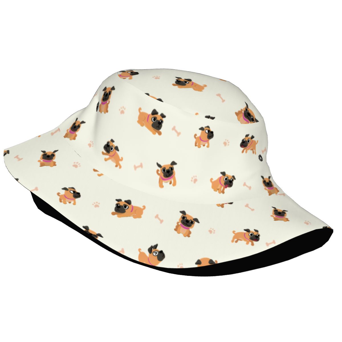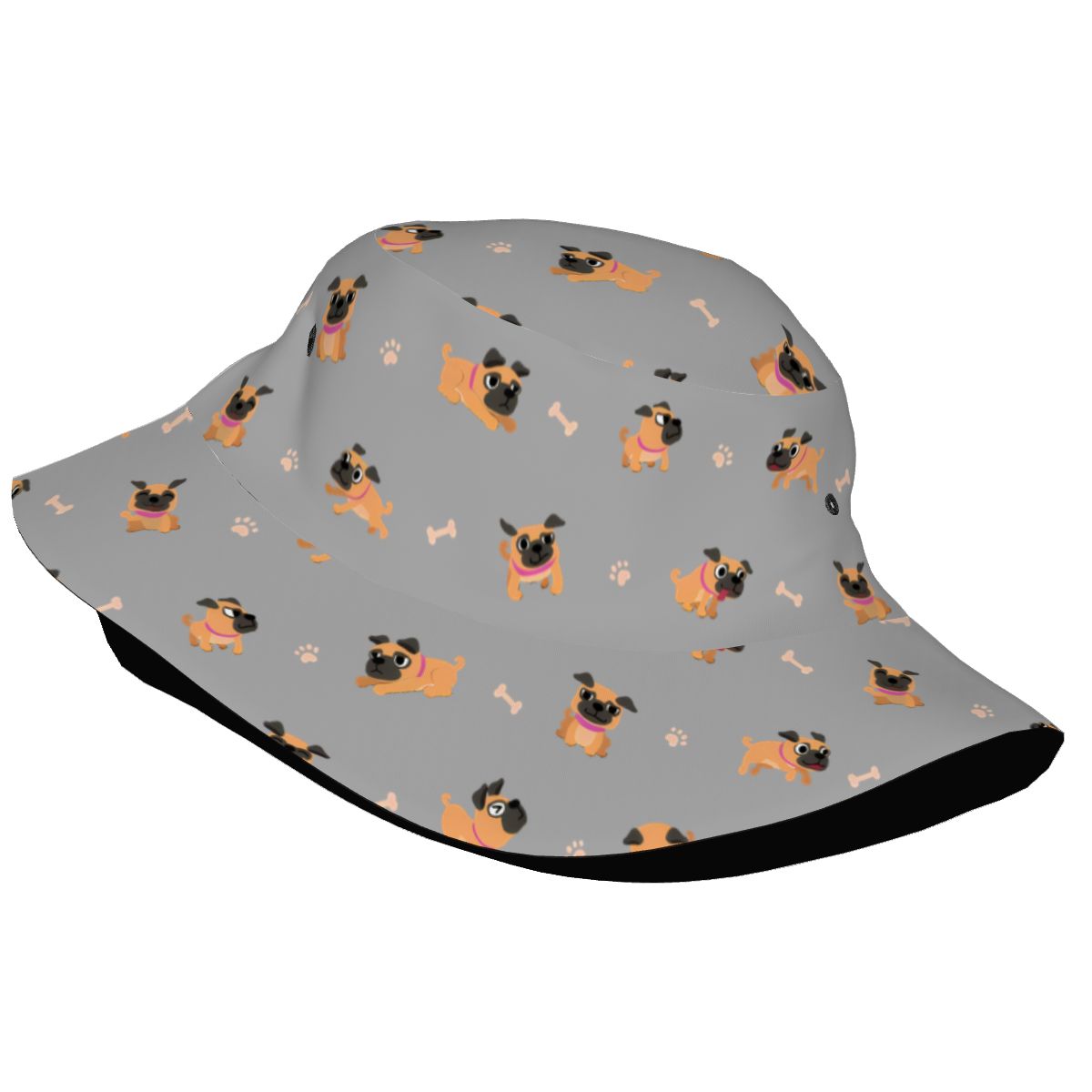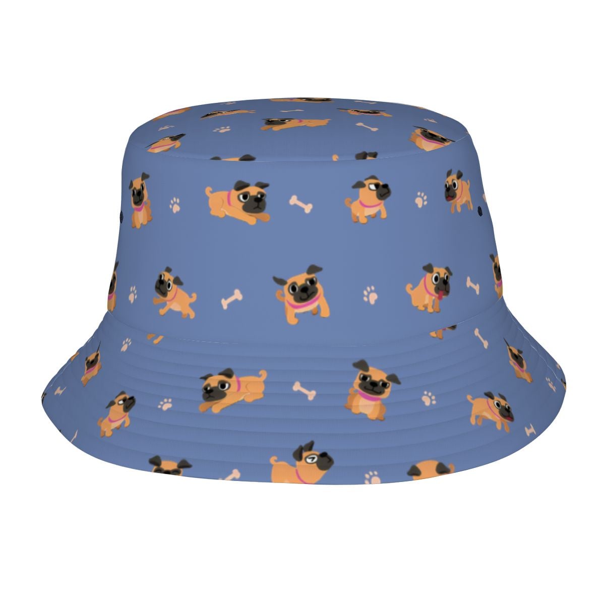 Bring instant sunshine to any day with the Playful Pug Adventure Bucket Hat.