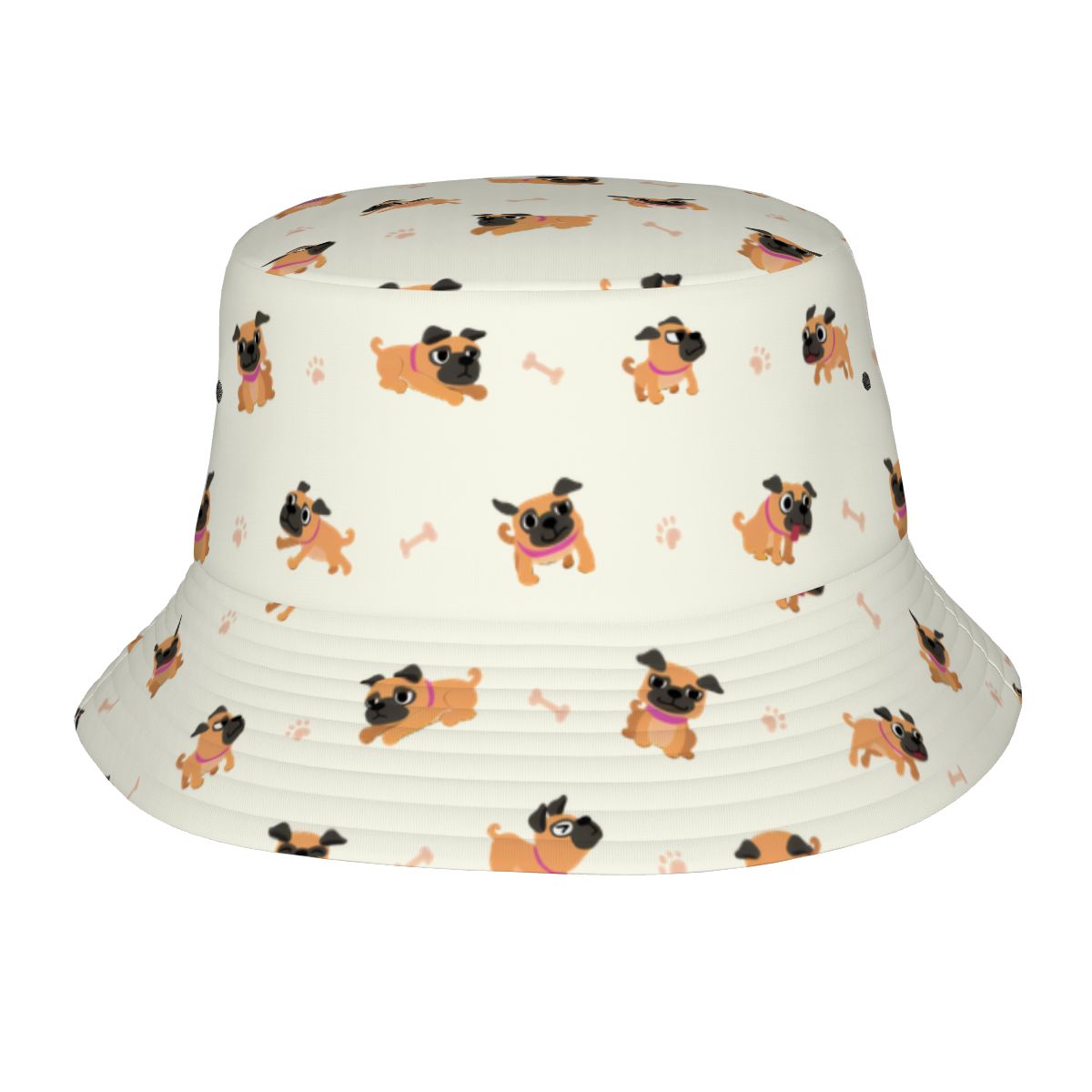 Playful Pug Adventure Bucket Hat-Hats & Caps-Ivory White-One Size-1