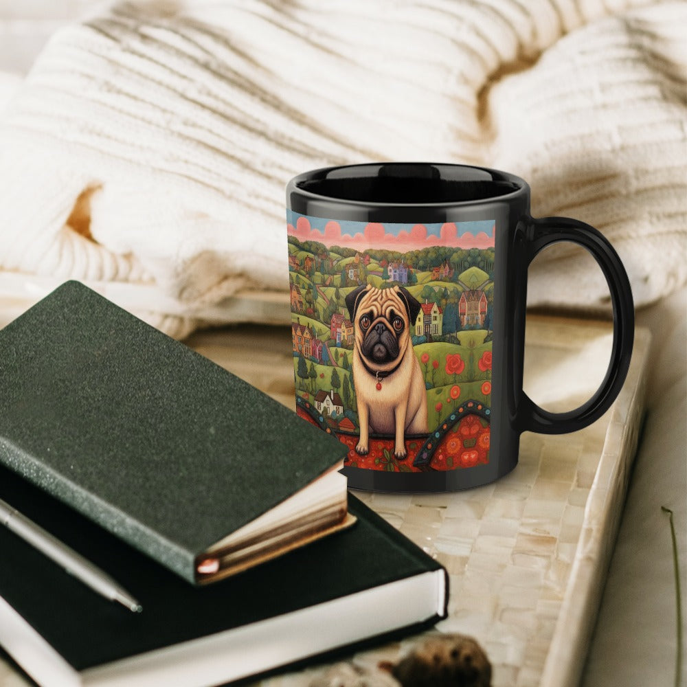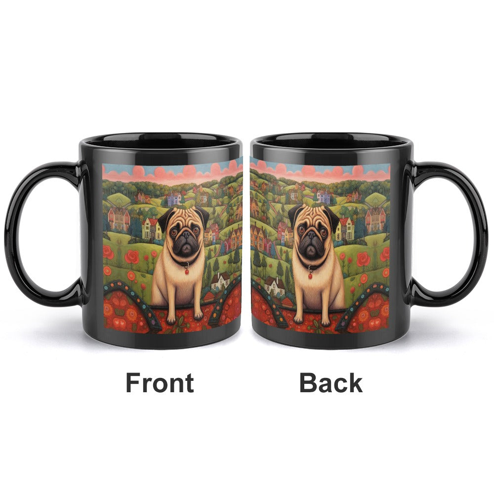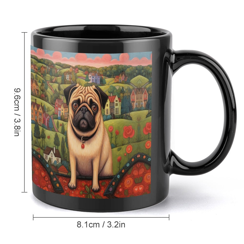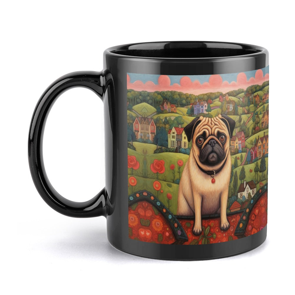 Celebrate the bond with your Pug through our enchanting Pug at the Precipice Coffee Mug.