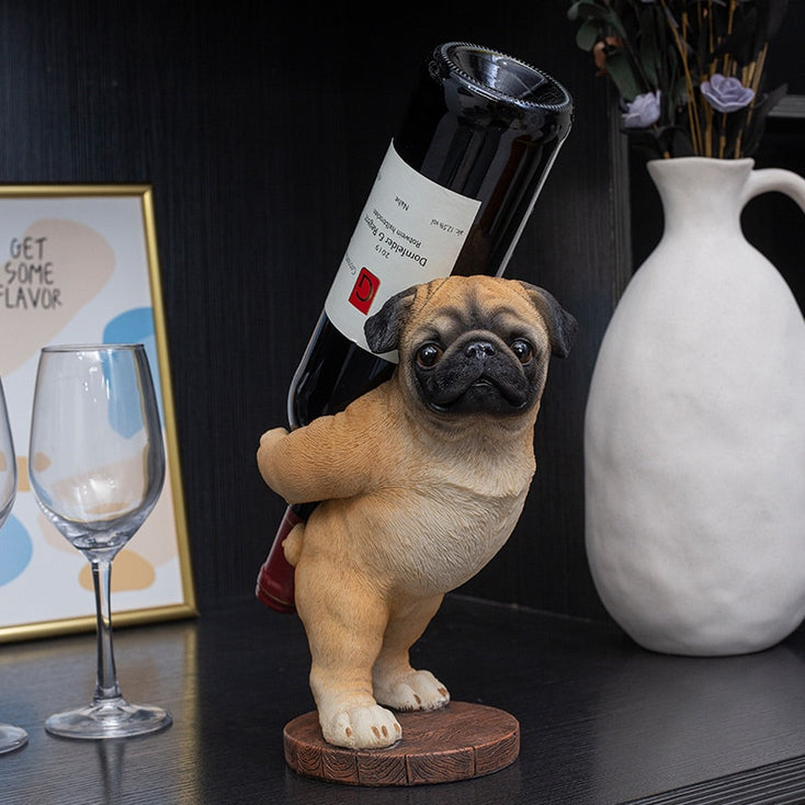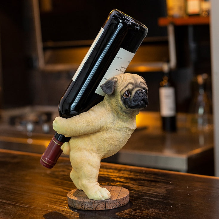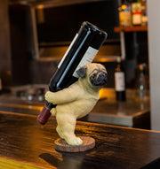 Image of Pug wine holder holding a bottle of wine