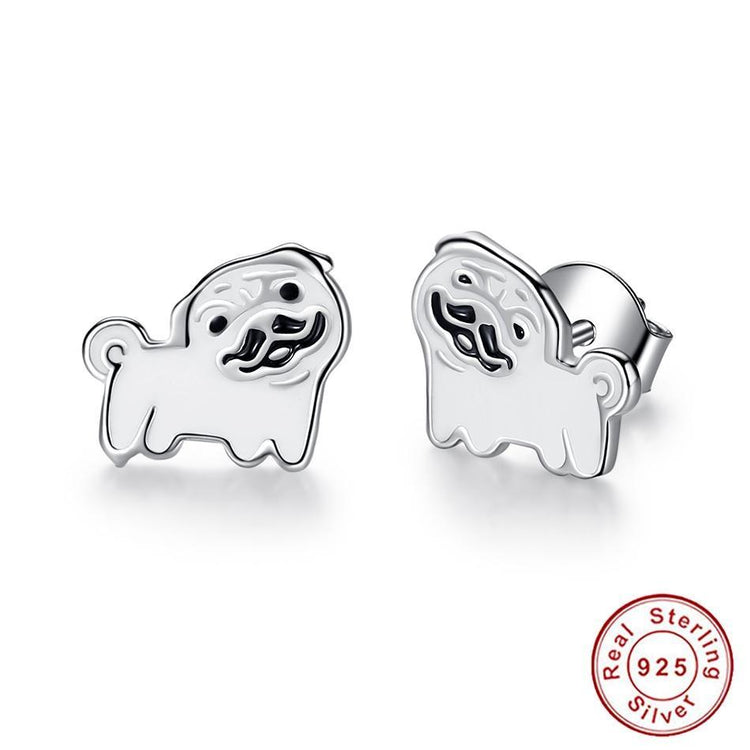 Pug Love Silver and Enamel EarringsDog Themed Jewellery