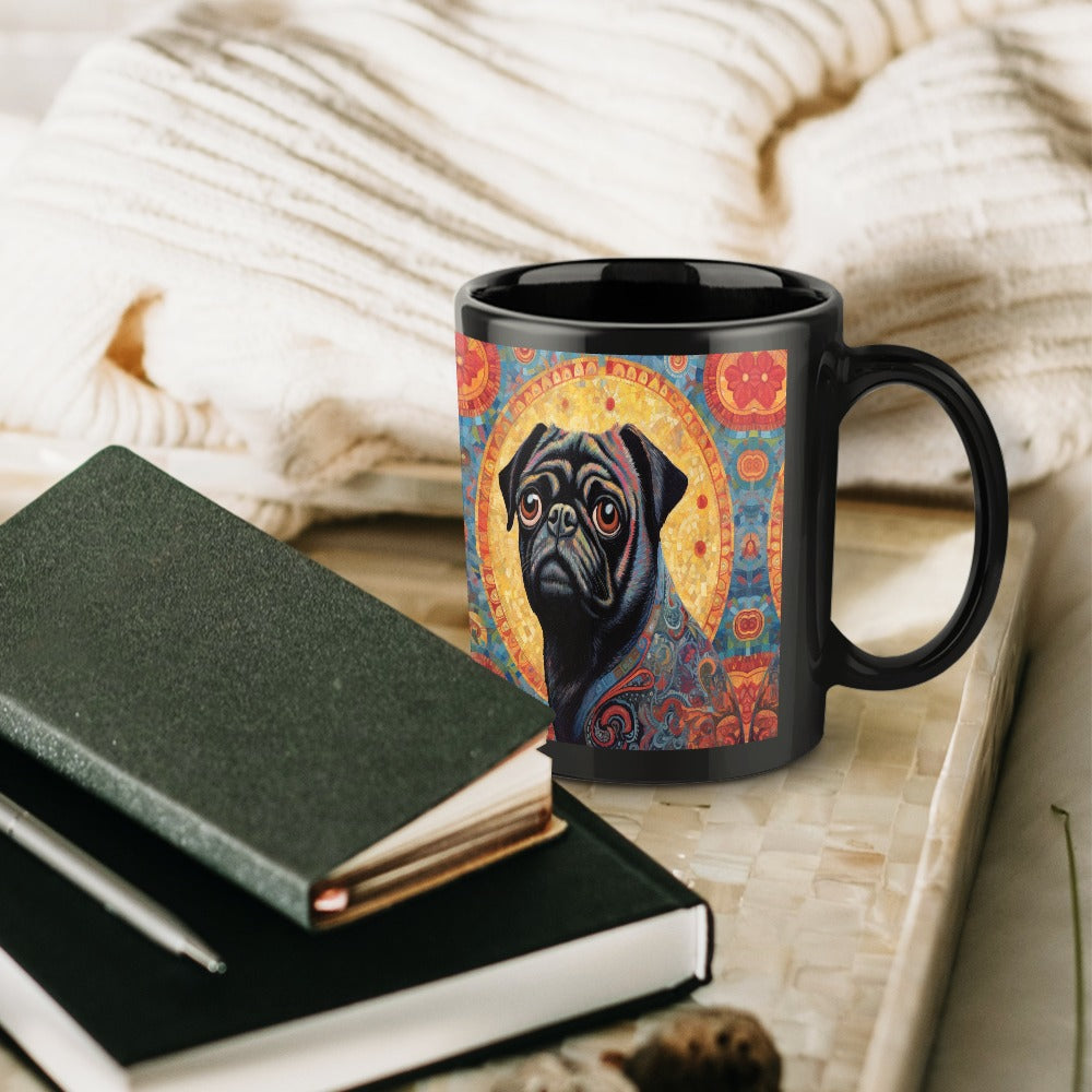 Celebrate your love for Pugs with our stunning Pug Portrait with Mosaic Halo Coffee Mug.