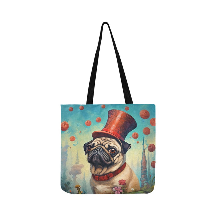 Perfect for the Pug lover with an appreciation for art and magic, this tote bag captures the essence of the Pug breed through a captivating design. A Pug, adorned with a top hat and surrounded by the mystical beauty of an enchanted forest, invites you to explore the realms of imagination.