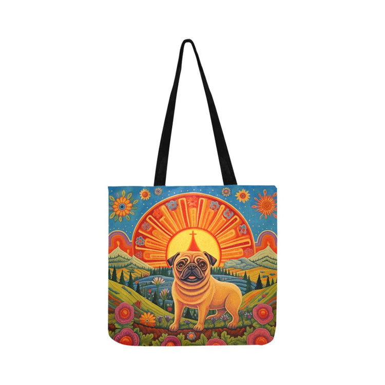 The "Pug's Radiance" tote bag is a versatile piece that serves as a perfect companion for your daily errands, grocery shopping, or as a stylish Pug Accessory for a casual day out.