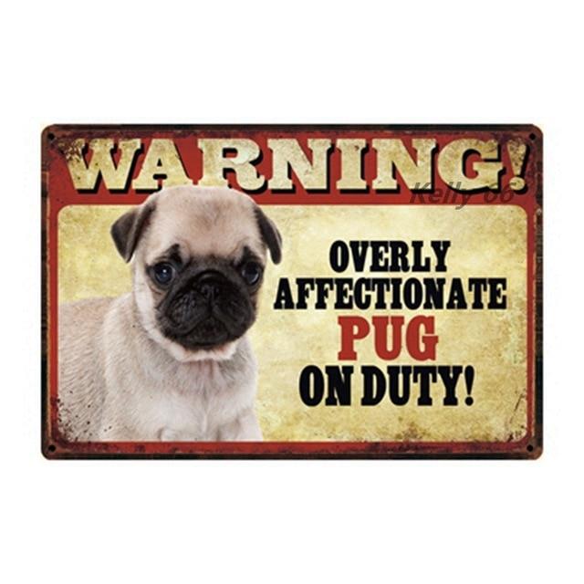 Warning Overly Affectionate Pug on Duty Tin Poster