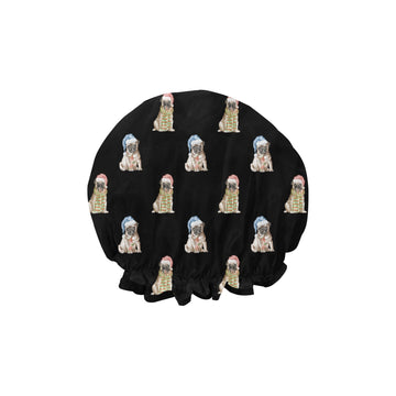 Featuring a beautiful watercolor Christmas pattern of Fawn Pugs, these shower caps showcase pugs adorned with red and blue holiday accessories. The fawn coat color adds a warm and inviting touch to the delightful design.