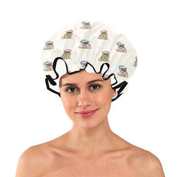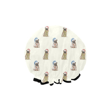 Watercolor Fawn Pugs Christmas Elastic Reusable Shower Caps-Accessories-Accessories, Christmas, Dog Mom Gifts, Pug-Ivory White-ONE SIZE-1