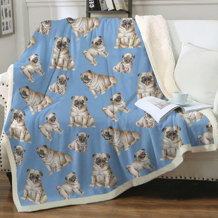 Watercolor Symphony Fawn Pugs Sherpa Fleece Blanket - 8 Colors-Blanket-Bedding, Blankets, Home Decor, Pug-Cornflower Blue-Single-16