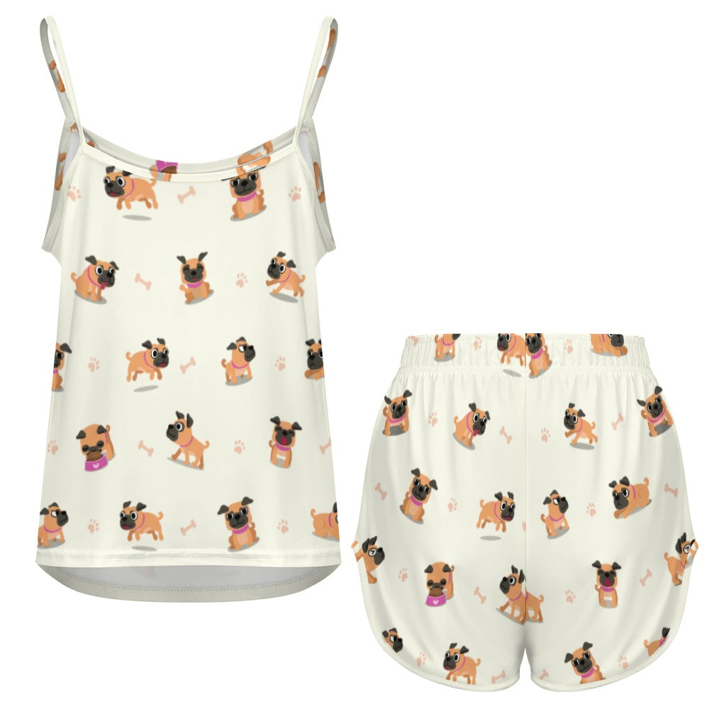 Playful Pug Adventure Women's Cami and Shorts Pajama Set