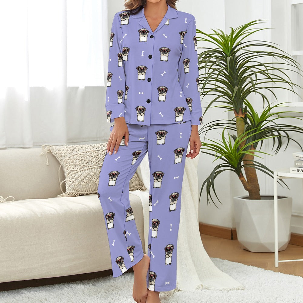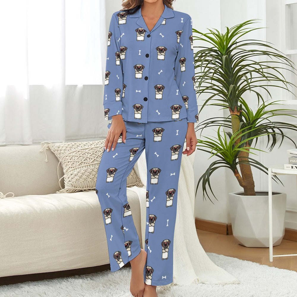 Stylish Pug Swag Pajamas Set for Women-S-CornflowerBlue_1-24