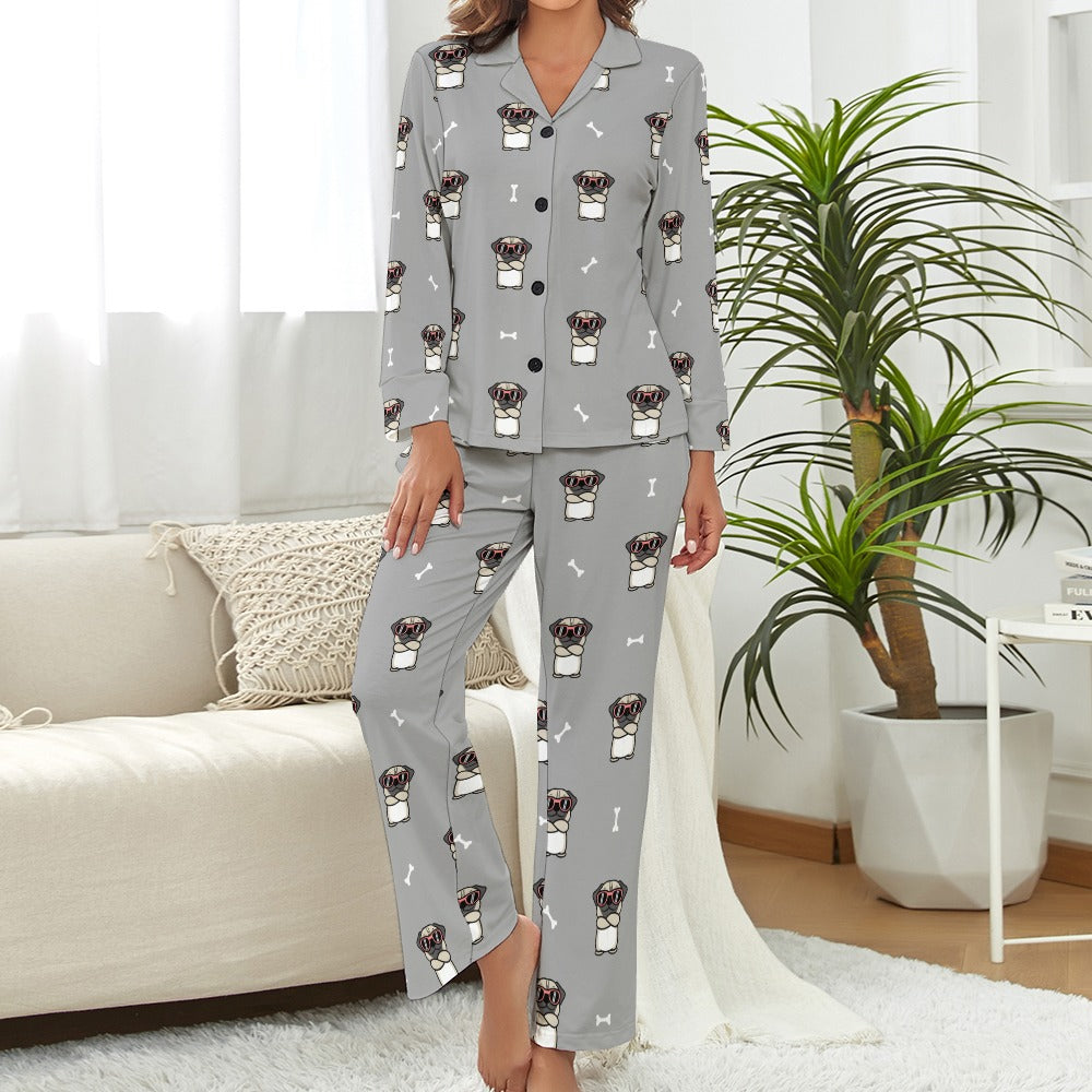 Stylish Pug Swag Pajamas Set for Women-S-DarkGray-28