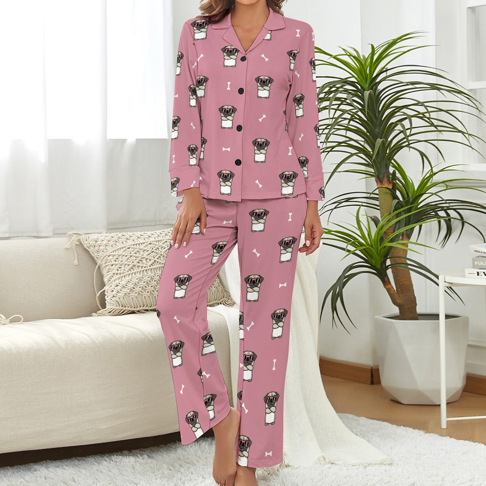 Stylish Pug Swag Pajamas Set for Women-S-Pink-7