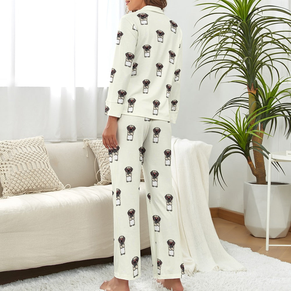 Stylish Pug Swag Pajamas Set for Women-S-Ivory-1