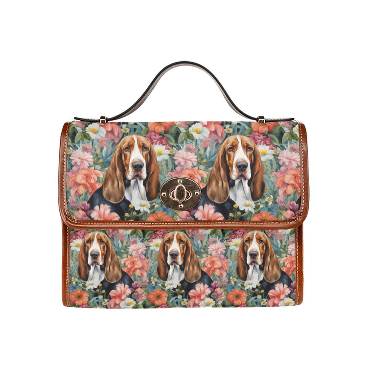 Botanical Beauty Basset Hounds Satchel Bag Purse