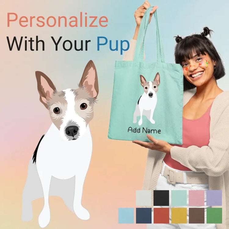 Personalize with your pup's name! Featuring the most adorable Rat Terrier dog artwork, this canvas tote bag combines cotton and polyester for durability and style. Available in 11 colors with a safety zip closure, it’s perfect for daily work essentials, lunch boxes, books, workout gear, or small grocery shopping trips.