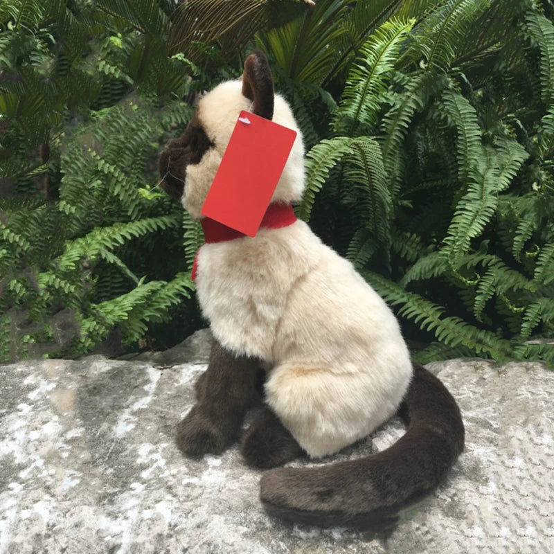 Realistic Sitting Red Collar Siamese Cat Plush Toy