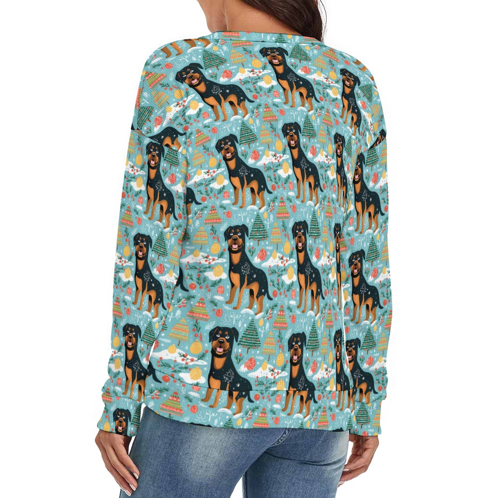 Celebrate the joy of the holiday season with our Jovial Giants Rottweilers' Delight Women's V-Neck Christmas Sweater!