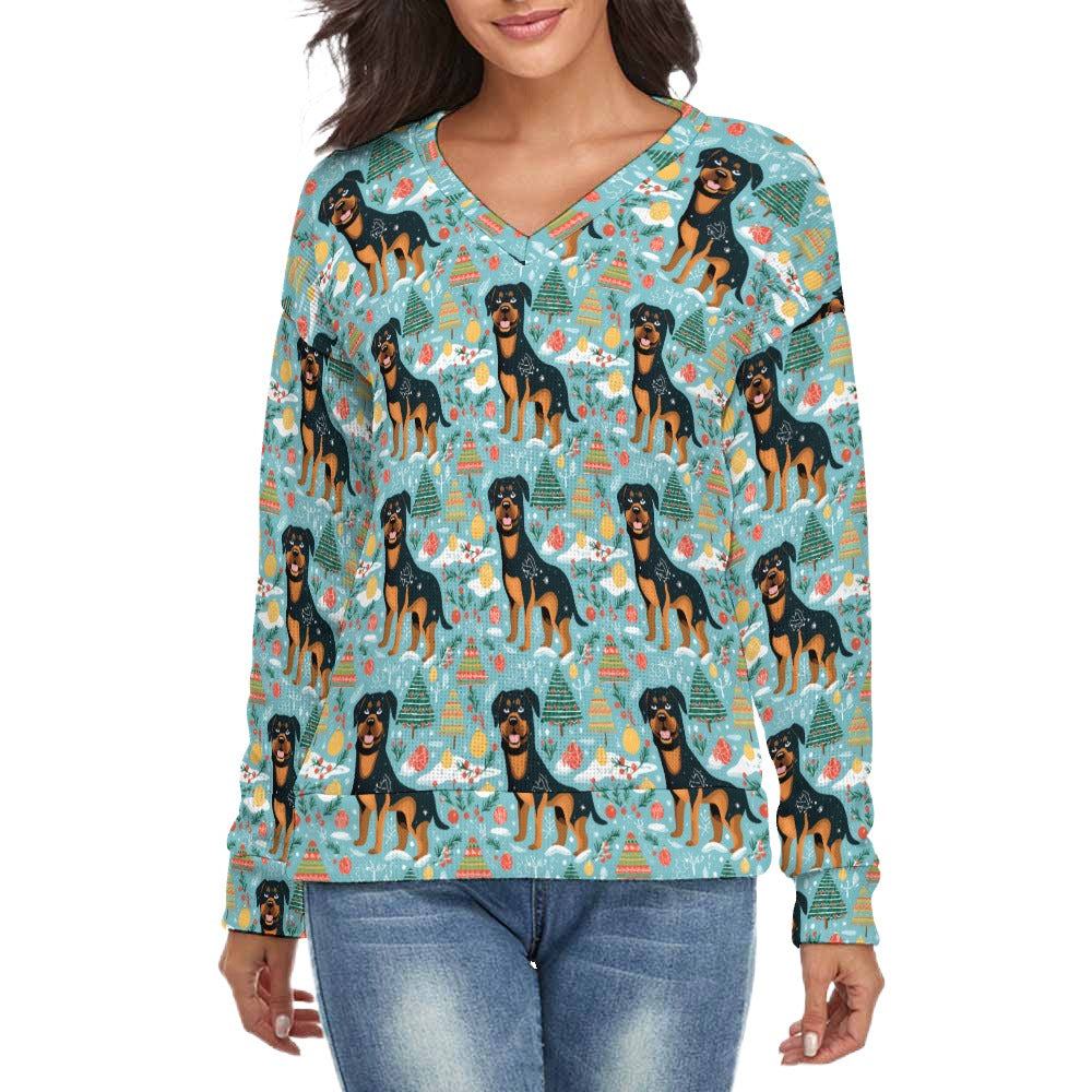 Jovial Giants Rottweilers' Delight Women's V-Neck Christmas Sweater