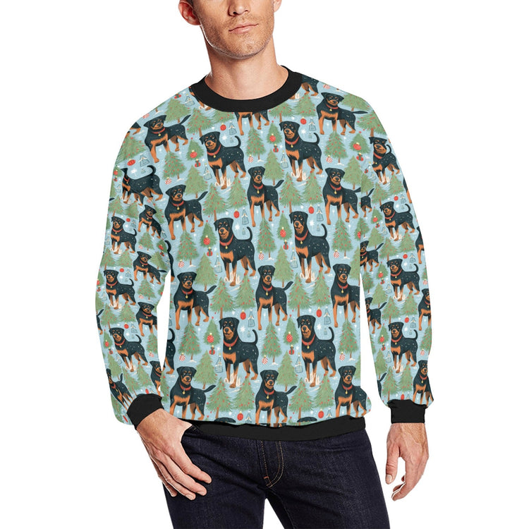 Rottweiler's Christmas Sweatshirt for Men - Festive Guardians Rottweiler's Christmas Fuzzy Sweatshirt for Men