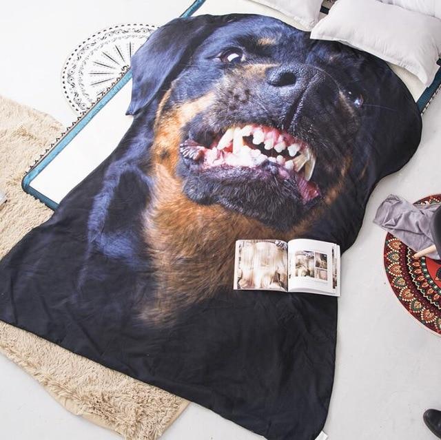 Featuring a ferocious growling 3D Rottweiler design, this blanket offers a super soft and velvety feel, and comes in the shape of your favorite furry friend!