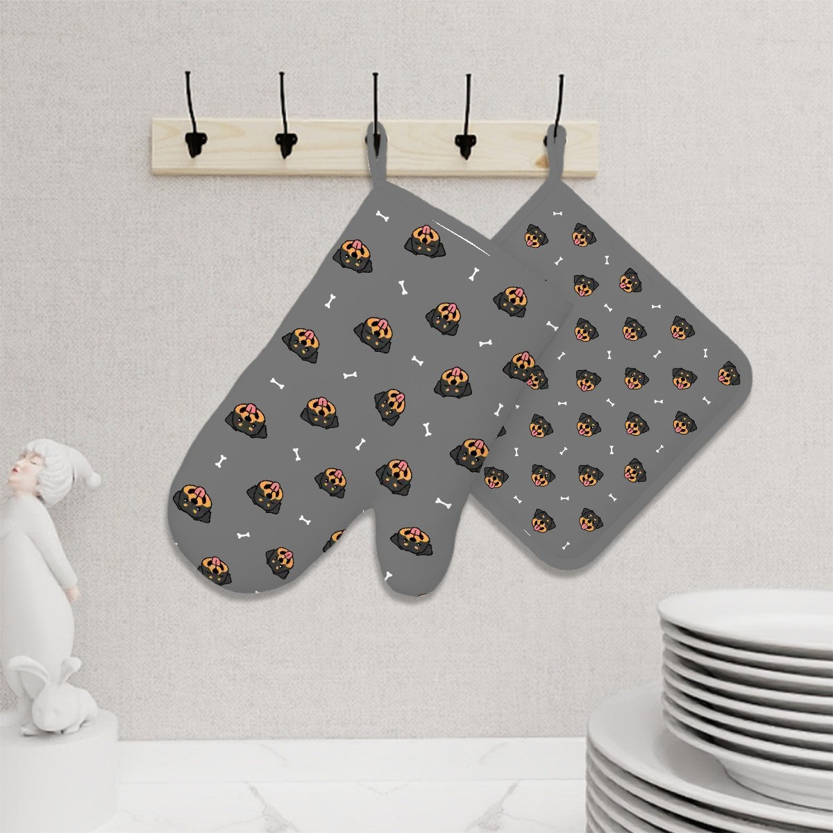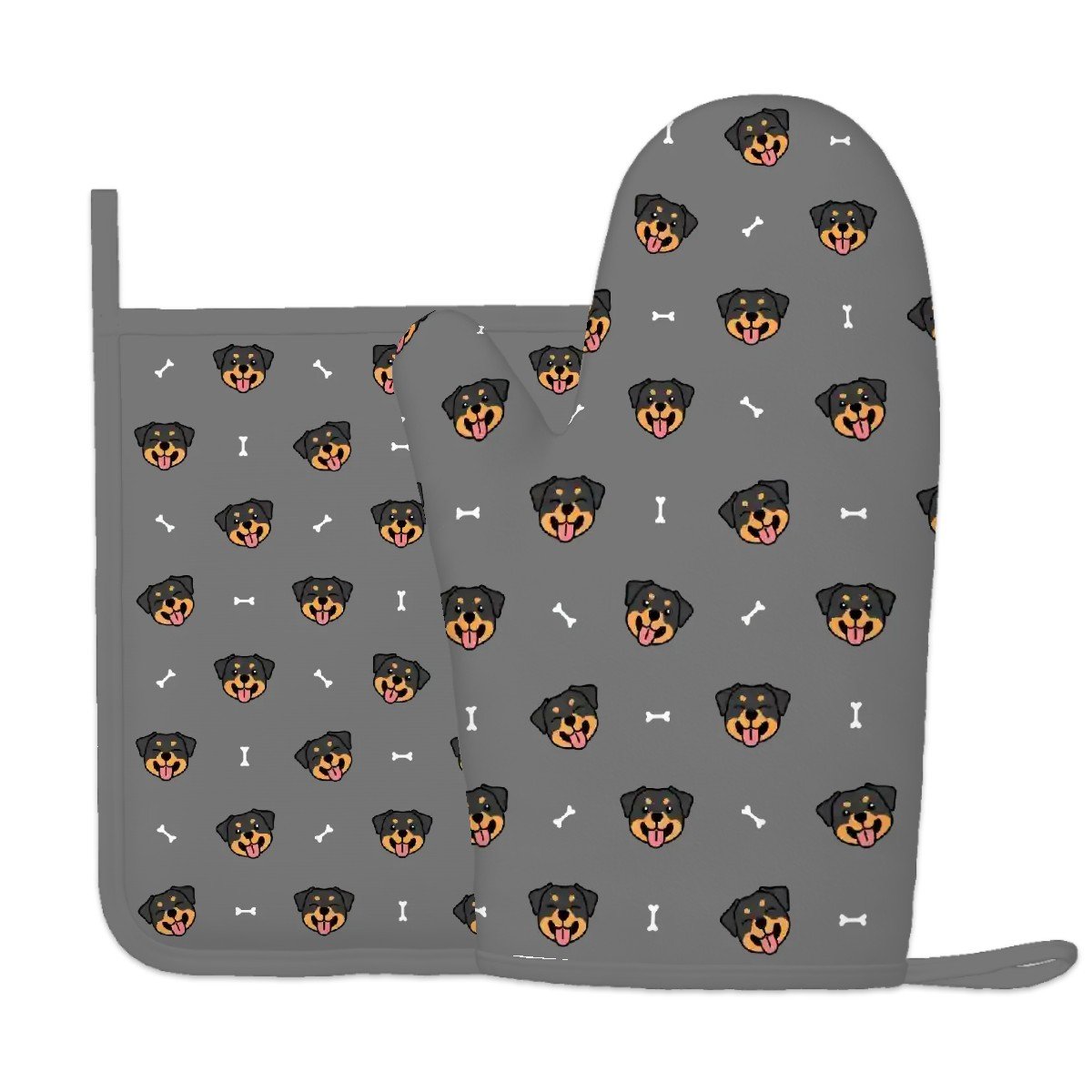 Happy Rottweiler Delight Oven Mitts and Pot Holder Set