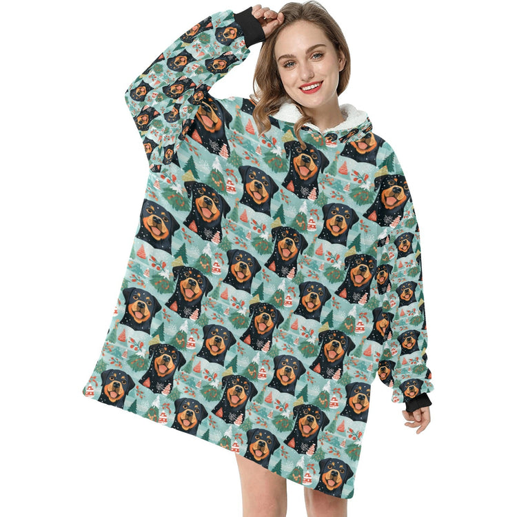Wrap yourself in the magic of the holiday season with our Rottweiler's Winter Wonderland Christmas Blanket Hoodie.