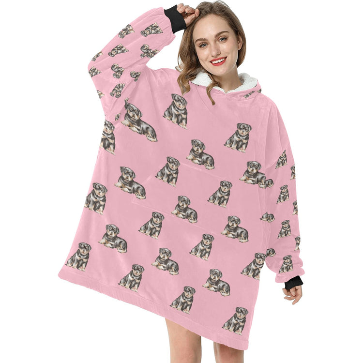 Watercolor Charm Rottweiler Puppies Blanket Hoodie-Blanket-Apparel, Blanket Hoodie, Blankets, Dog Mom Gifts, Rottweiler-Light Pink-ONE SIZE-8