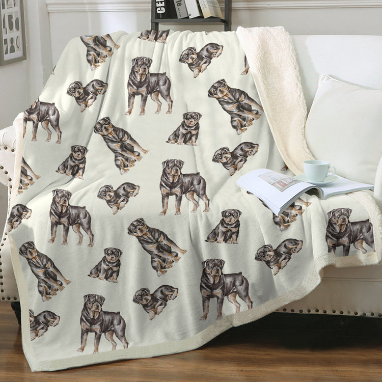 Watercolor Elegance Rottweilers Warm Sherpa Fleece Blanket - 8 Colors