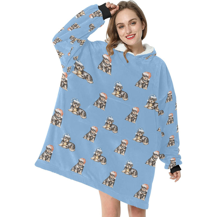 Watercolor Rottweiler Puppies Christmas Blanket Hoodie-Blanket-Apparel, Blanket Hoodie, Blankets, Dog Mom Gifts, Rottweiler-Sky Blue-ONE SIZE-22