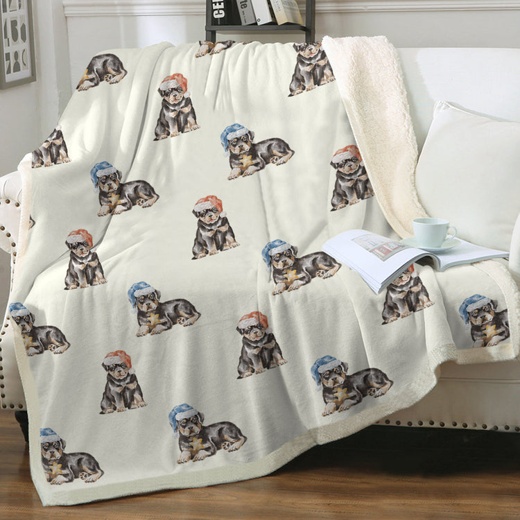 Rottweiler Christmas Blanket - Watercolor Rottweiler Puppies Christmas - Sherpa Fleece