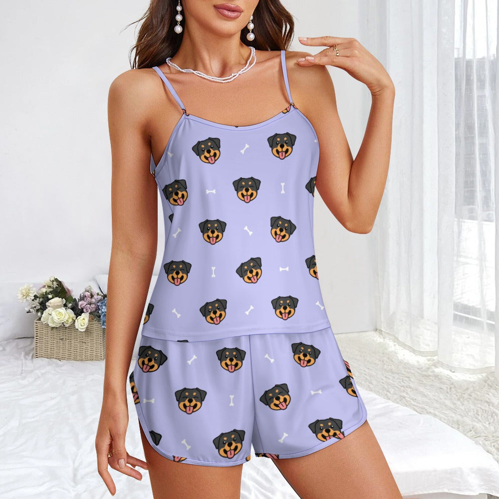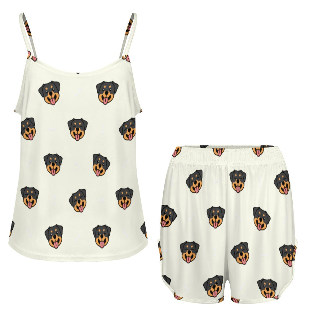 Celebrate your love for Rottweilers with our Happy Rottweiler Delight Women's Cami and Shorts Pajama Set! This delightful set features cheerful Rottweiler faces, capturing their loyal and confident spirit in a playful design.