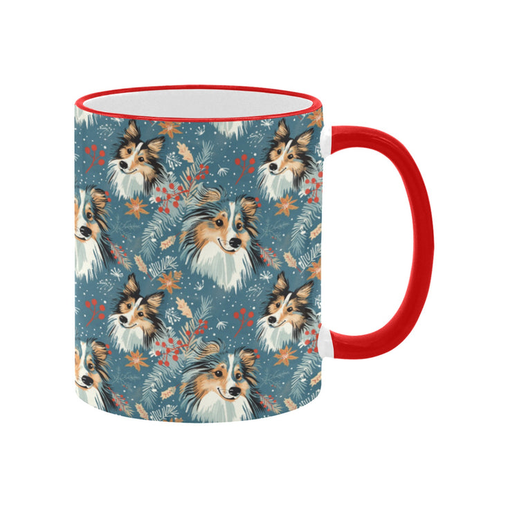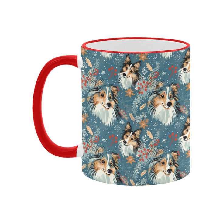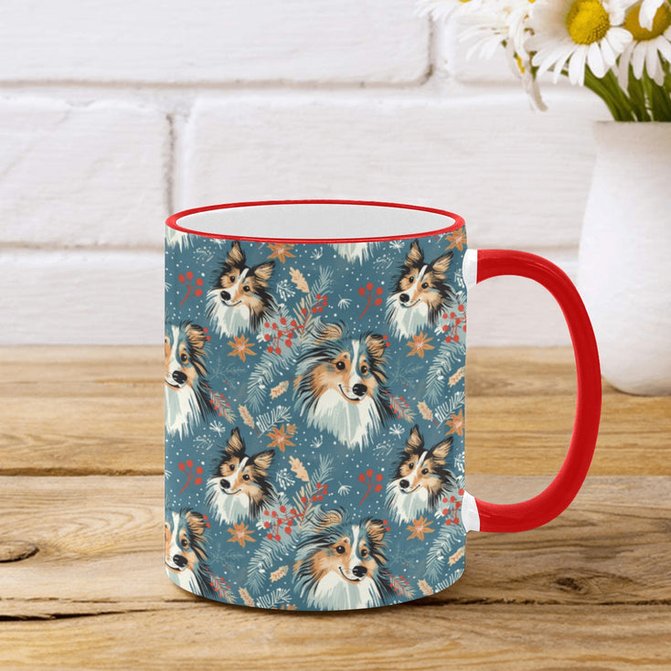 This delightful mug features vibrant artwork of Shetland Sheepdogs frolicking in a snowy wonderland, capturing the joy and warmth of the season.