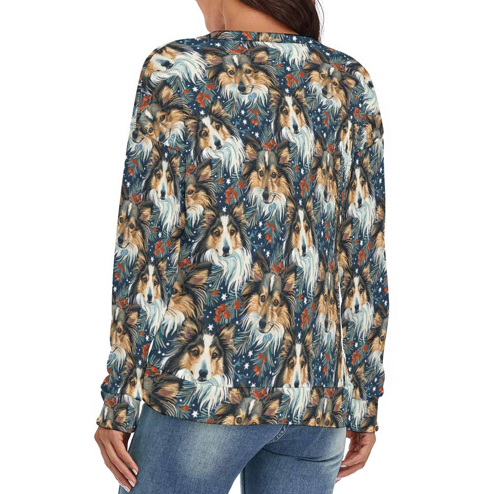 Wrap yourself in the warmth of companionship this holiday season with our Midwinter Dream Sheltie's Women's V-Neck Christmas Sweater.