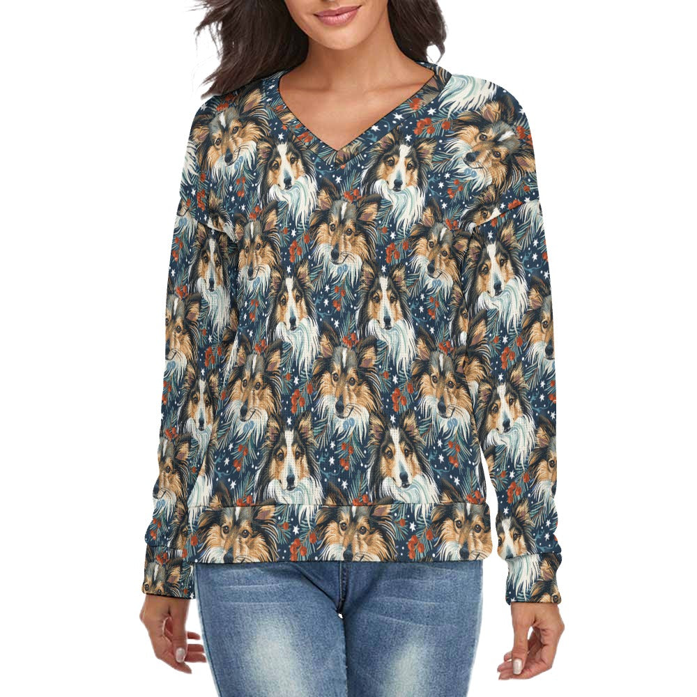 Midwinter Dream Sheltie's Women's V-Neck Christmas Sweater