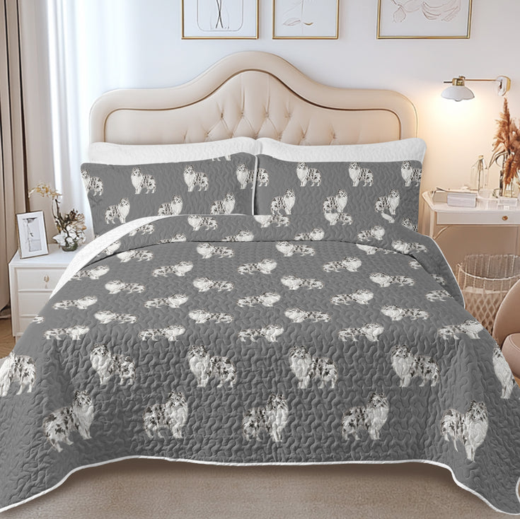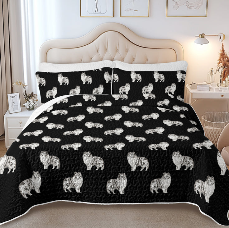 Watercolor Bi Blue Shelties Quilted Bedding Set-Bedding-Bedding,Blankets,Christmas,Home Decor-7