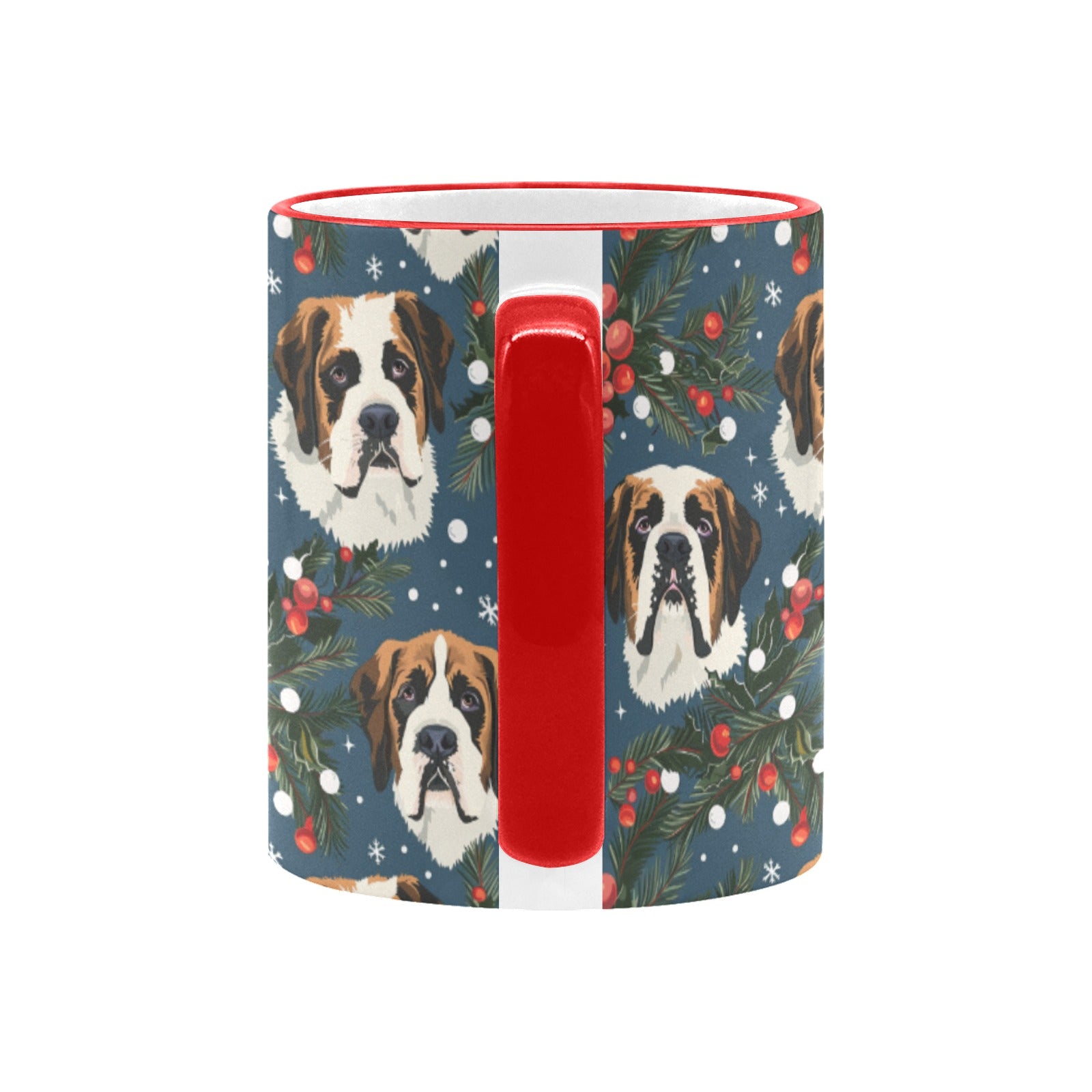 This enchanting mug features a noble Saint Bernard, surrounded by festive snowflakes and vibrant seasonal flora, inviting you to embrace the spirit of joy and companionship.