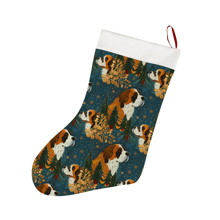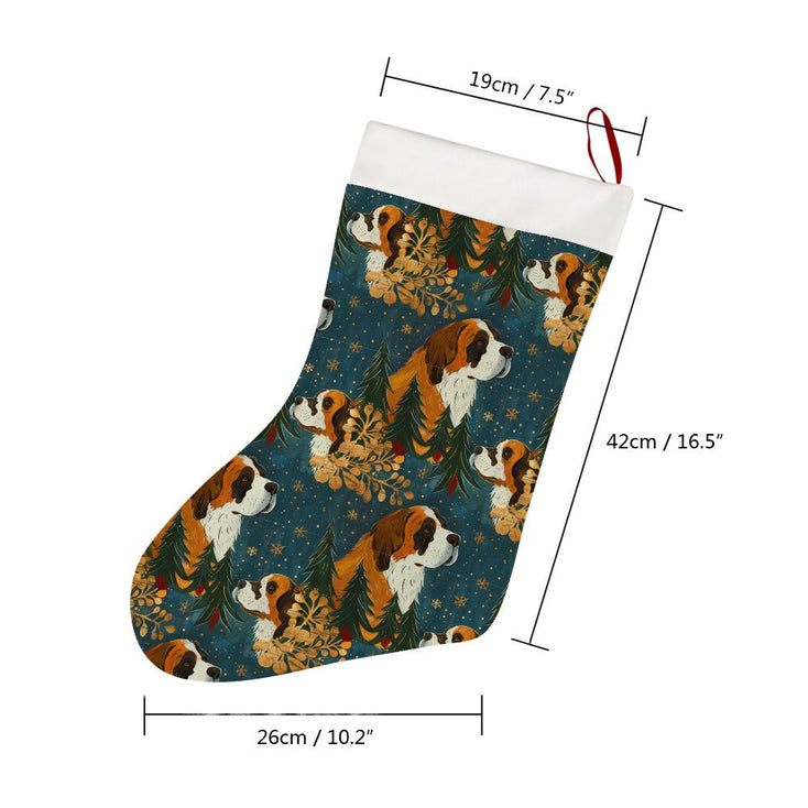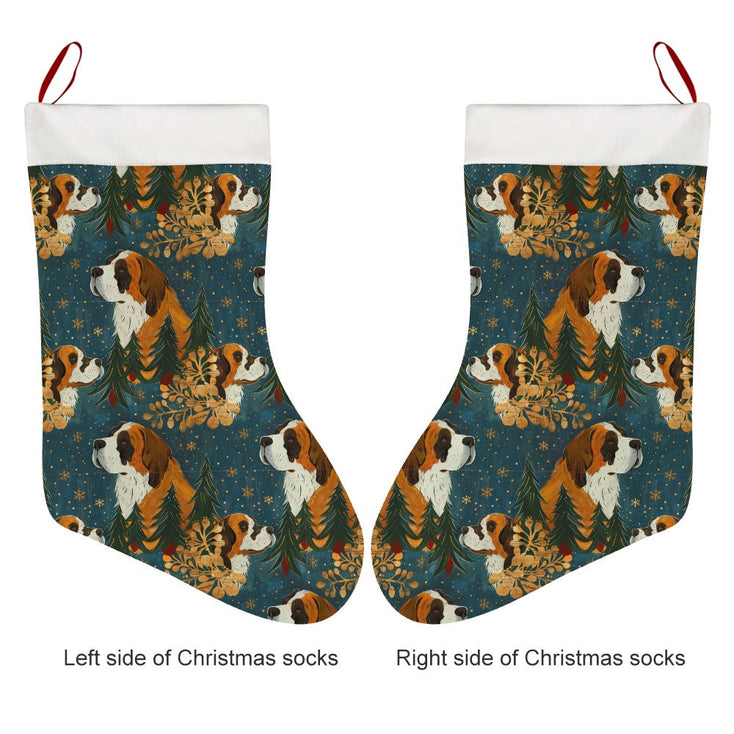 Snowflakes and Saint Bernard's Christmas Symphony Christmas Stocking-Christmas Ornament-Christmas, Home Decor, Saint Bernard-26X42CM-White-1