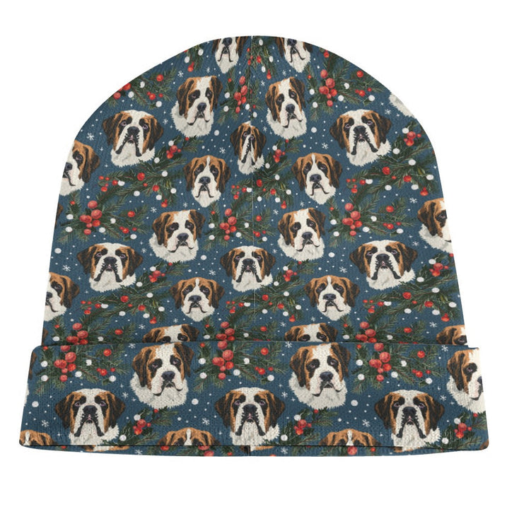 Mistletoe Mountain Dogs Saint Bernard Warm Christmas Beanie