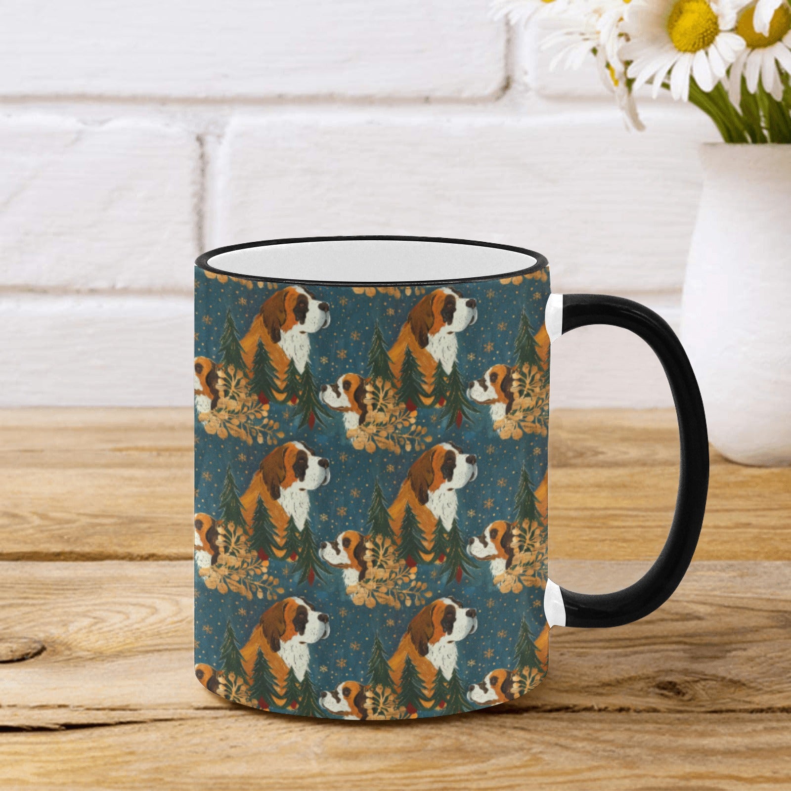 Embrace the spirit of the season with our Snowflakes and Saint Bernard's Christmas Symphony Coffee Mug, a perfect companion for your cozy moments.