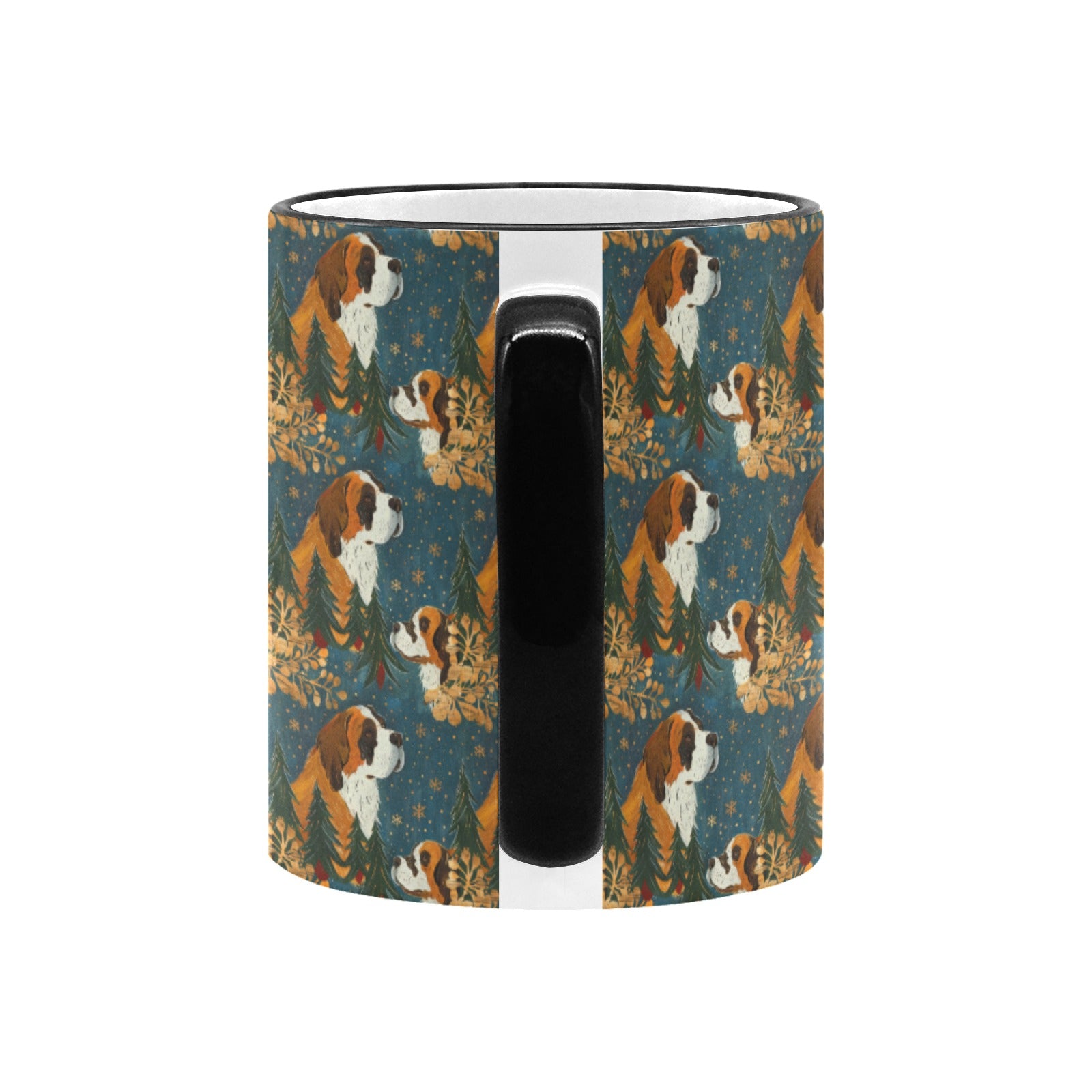 This exquisite mug captures the gentle essence of the Saint Bernard, set against a serene winter backdrop that evokes warmth and nostalgia.