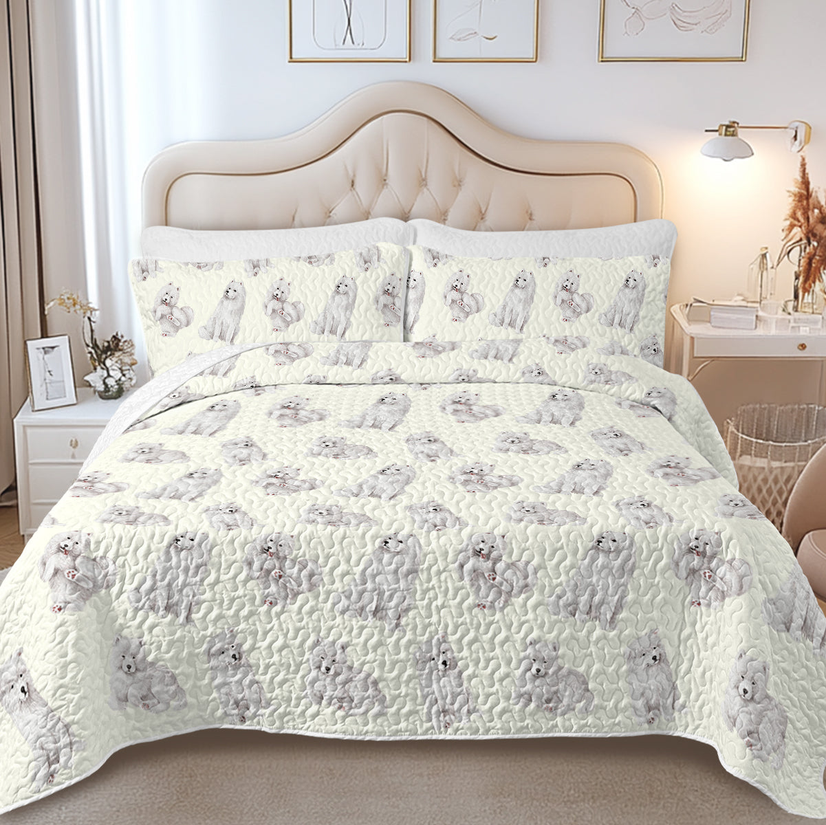 Watercolor Elegance Samoyeds Quilted Bedding Set