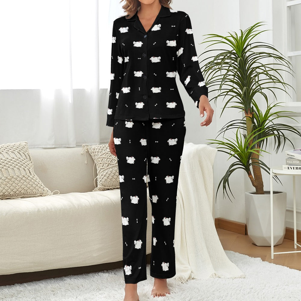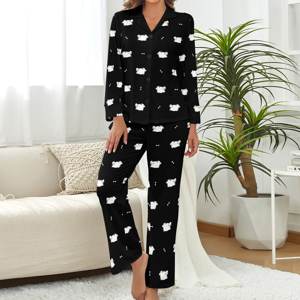 Fluffy Samoyed Frolic Pajamas Set for Women-S-Black-31
