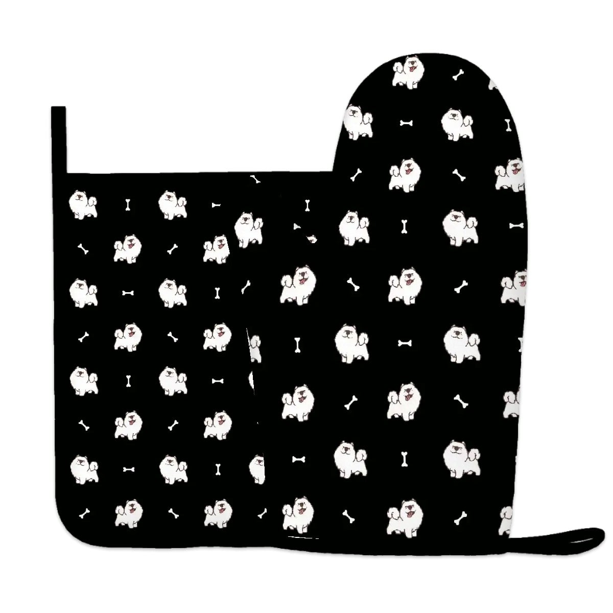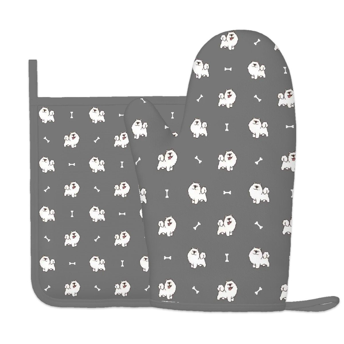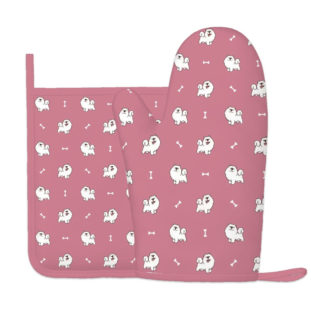Smiling Samoyed Love Oven Mitts and Pot Holder Set