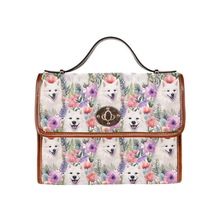 Watercolor Flower Garden Samoyeds Satchel Bag Purse