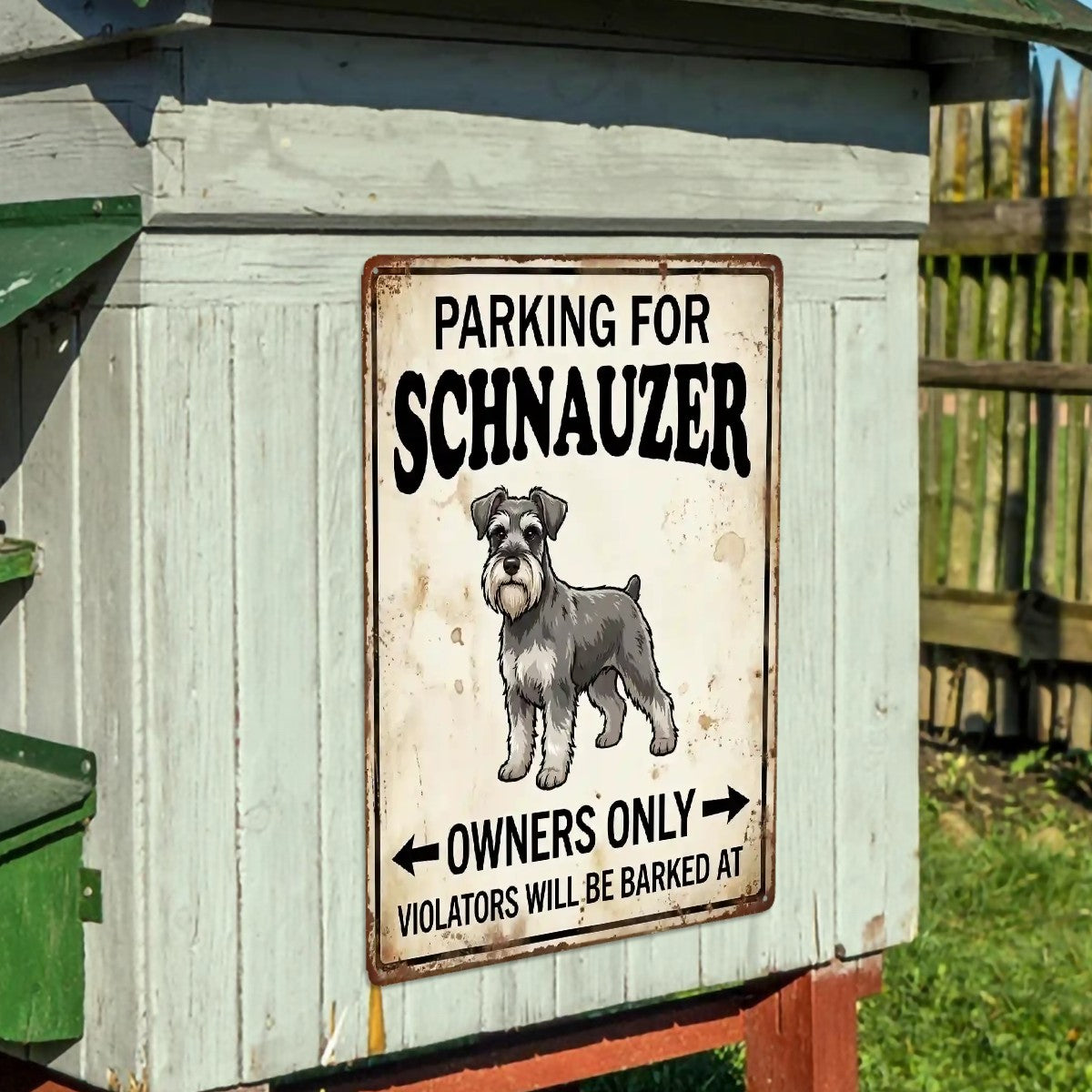 Make any driveway feel like home with a hilarious Personalized Schnauzer parking sign that steals the show.