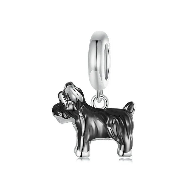 Schnauzer Charm - 925 Silver - Adorable Black and Silver Schnauzer Love