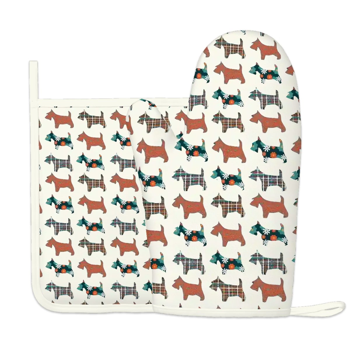 Add a touch of canine charm to your kitchen with this tail-waggingly good Schnauzer oven mitt set.