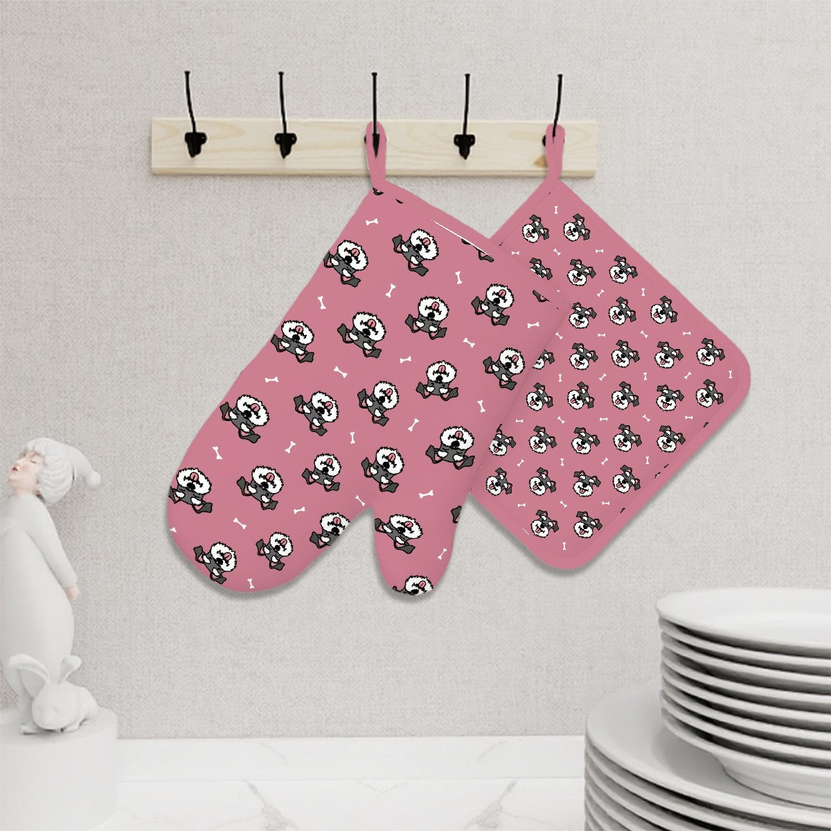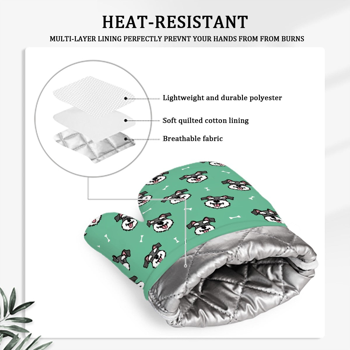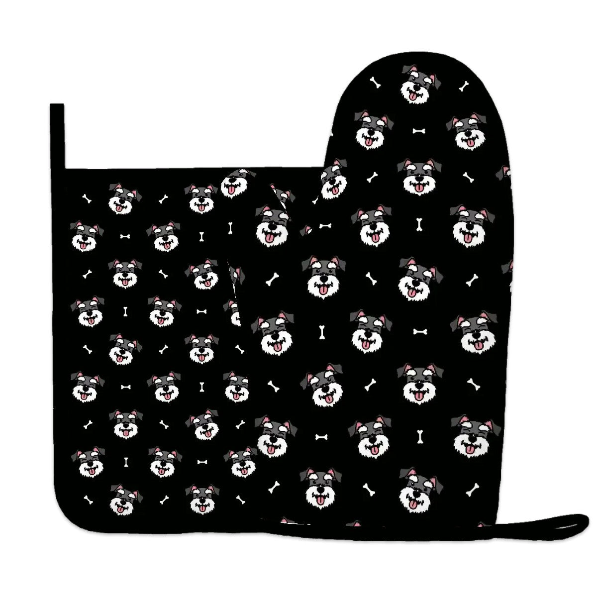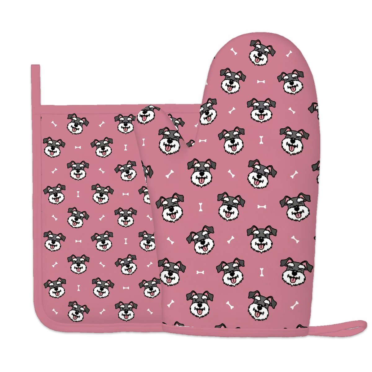 Happy Happy Schnauzer Love Oven Mitts and Pot Holder Set